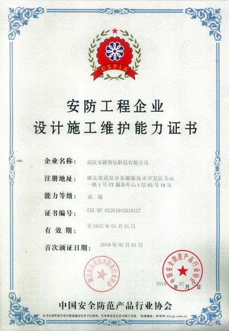 安防工程企業(yè)設(shè)計(jì)施工維護(hù)能力二級(jí)證書