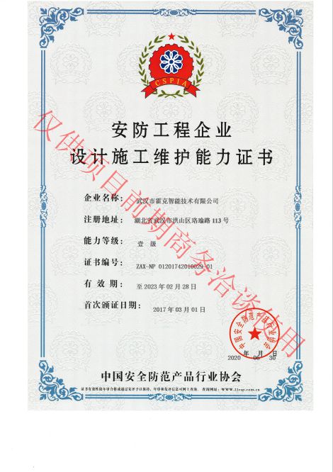 安防工程企業設計施工維護能力一級證書