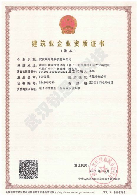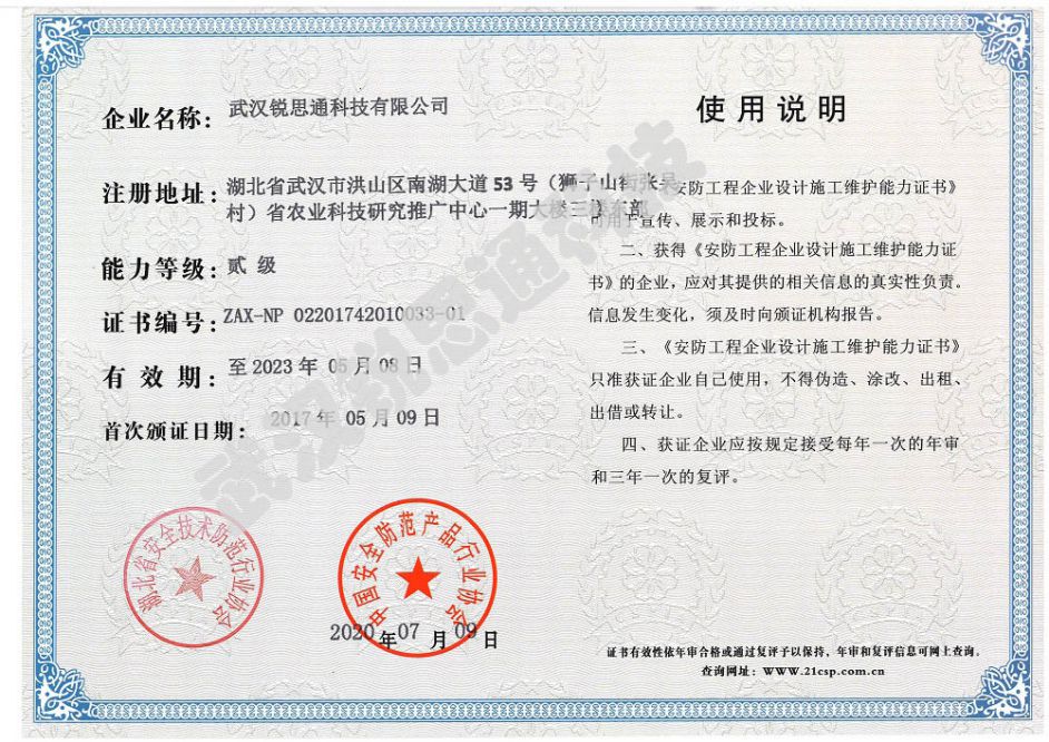 安防工程企業設計施工維護能力二級證書