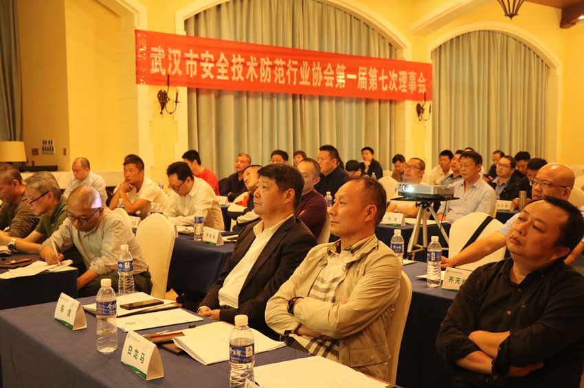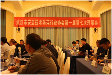 2020年9月25日下午,協會第一屆第七次理事會會議在梁子湖碧嵐酒店順利召開,41家理事會單位負責人參加了會議,會議由秘書長陳虎主持。武漢市公安局社會公共安全產品行業管理辦公室主任徐繼弘,警務技術四級主任姚東明受邀出席了會議。