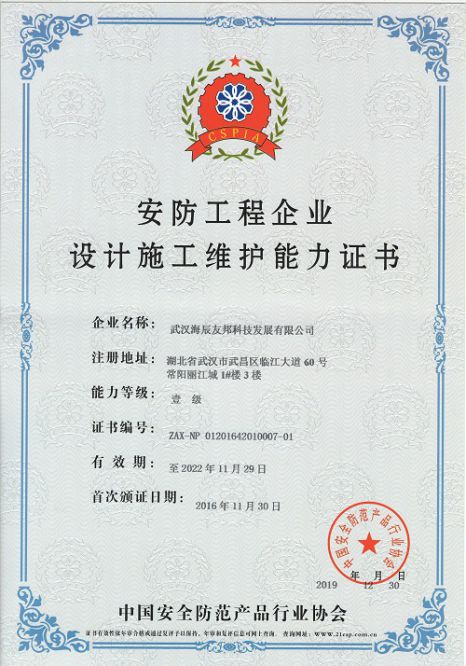 安防工程企業(yè)設(shè)計(jì)施工維護(hù)能力一級(jí)證書