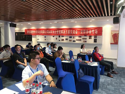 ? ? ? ? 2020年9月29日下午,華為攜湖北敏捷物聯網絡科技有限公司以“攜手同行,共贏未來”為主題,在融創智谷舉行“華為云管理解決方案交流會——安防協會專場”,我會秘書長陳虎受邀出席了本次活動。