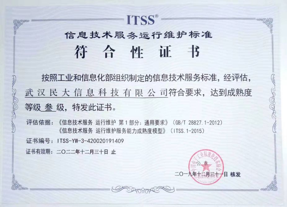 ITSS信息技術(shù)服務(wù)運(yùn)行維護(hù)標(biāo)準(zhǔn)符合性證書(shū)-三級(jí)