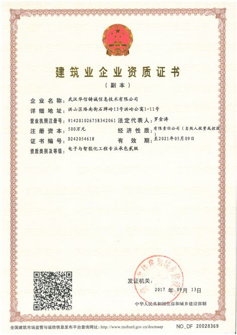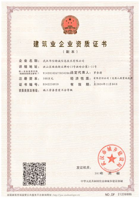湖北省安全防范工程設計施工維修登記備案書-A類