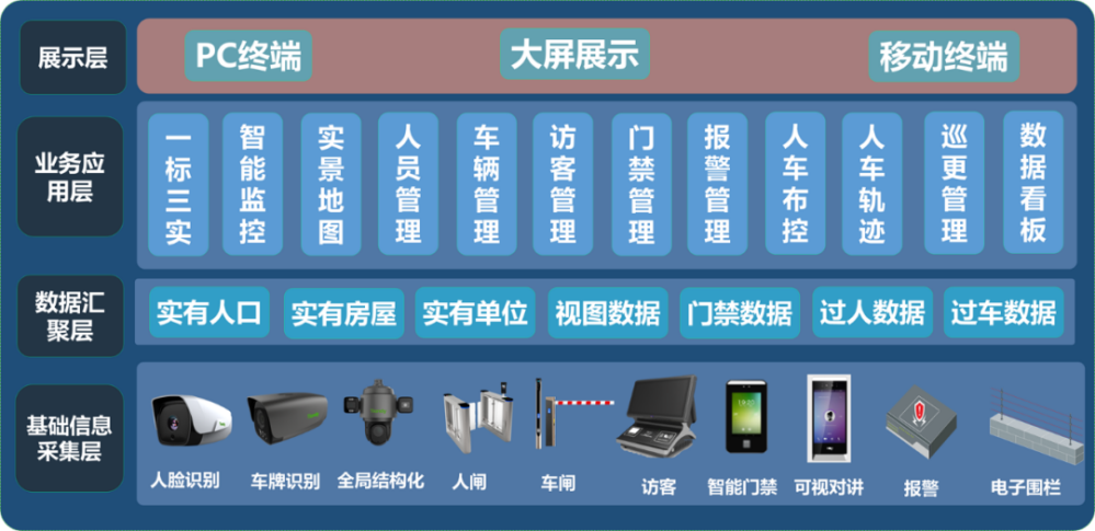 天地偉業智慧社區系統解決方案以安全社區、智能應用、安全防范、聯網管理為建設目標,以社區微腦為核心,集成“一標三實”、智能監控、周界防范、人臉識別比對、車閘管理、人閘管理、智能門禁、可視化對講、訪客管理、車輛管理、電動車乘梯、煙霧監測、巡更等系統管理,具備開放接口,可全面兼容主流廠商設備,實現社區的共建公治共享。