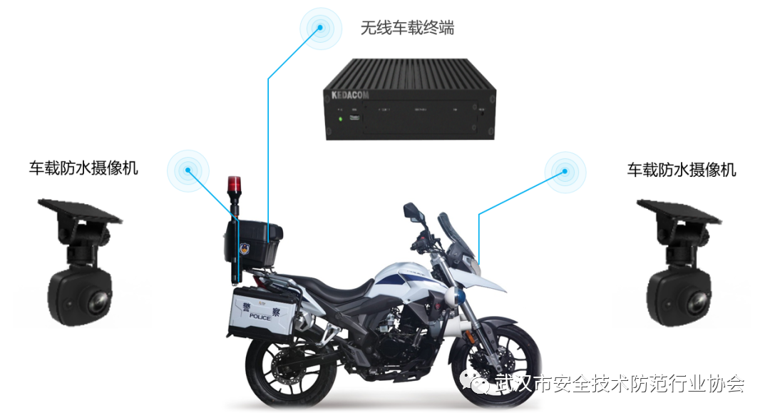 科達鐵騎移動執法方案,通過在警用摩托車上部署車載防水攝像機、無線車載終端等設備,實現摩托車前后、方視頻實時采集,并抓拍視野內的車牌、人臉圖片,與視頻一起上傳至視圖庫。
