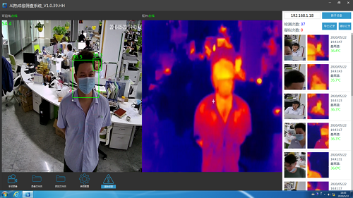 該安檢系統測溫智能攝像機集成高精度熱成像測溫傳感器,內置人臉智能抓拍算法,集圖像處理等技術于一體,且具備人臉檢測、體溫檢測、人臉抓拍等強大功能,支持20人同時測溫。