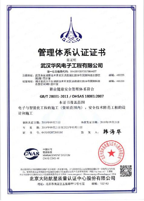 《GB/T28001-2011/OHSAS18001:2007 職業(yè)健康安全管理體系認證證書》04518S20720ROM;《GB/T 24001-2016/ISO 14001:2015 環(huán)境管理體系認證證書》04518E30865ROM;《GB/T19001-2016/ISO 9001質(zhì)量管理體系認證證書》04518Q31718ROM