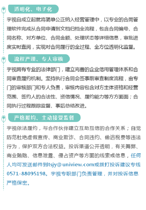 ? ? ? ? 近日,浙江省市場監(jiān)督管理局公示省“守合同重信用”企業(yè)名單,從企業(yè)和品牌社會影響力、合同信用管理體系、合同行為、合同履行狀況、經(jīng)營效益、社會信譽等多方面進行綜合評議和嚴格審核,是省內最具含金量和最受社會認可的企業(yè)信用水平評定稱號。宇視科技(uniview)憑借規(guī)范的合同信用管理體系、誠信守約的經(jīng)營行為等,成為最高等級AAA級守合同重信用企業(yè)。