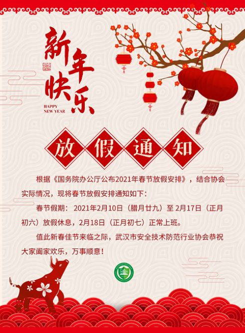 值此新春佳節來臨之際,武漢市安全技術防范行業協會恭祝大家闔家歡樂,萬事順意!
