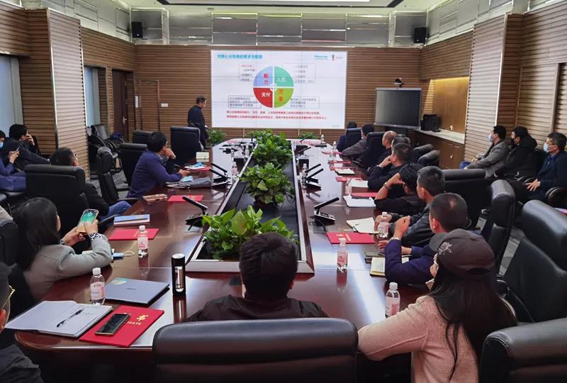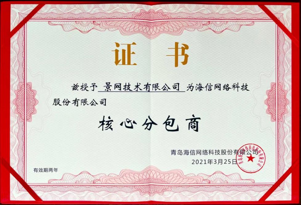 2021年3月27日,海信網科第一屆核心分包商溝通會在青島海信總部召開。海信網絡科技副總經理呂濤,副總經理王朋,生產采購部總經理唐建義,質量推進部總經理陳祥滿,客服中心林鵬,生產采購部張欽偉以及海信網科23家核心分包商參加會議。景網公司總經理王中月、工程分管領導陳志華受邀參會并簽約。