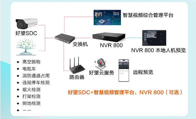 “智慧社區”系列算法應用于小區人、車、事、物等,全方面保障小區安全防控,真正的實現了社區智能化。智能攝像機可以識別可疑人員并自動預警,解決小區亂停車、高空拋物、占用消防通道等違規現象,不僅能優化基層小區治理結構,還為小區居民提供更好的小區服務。