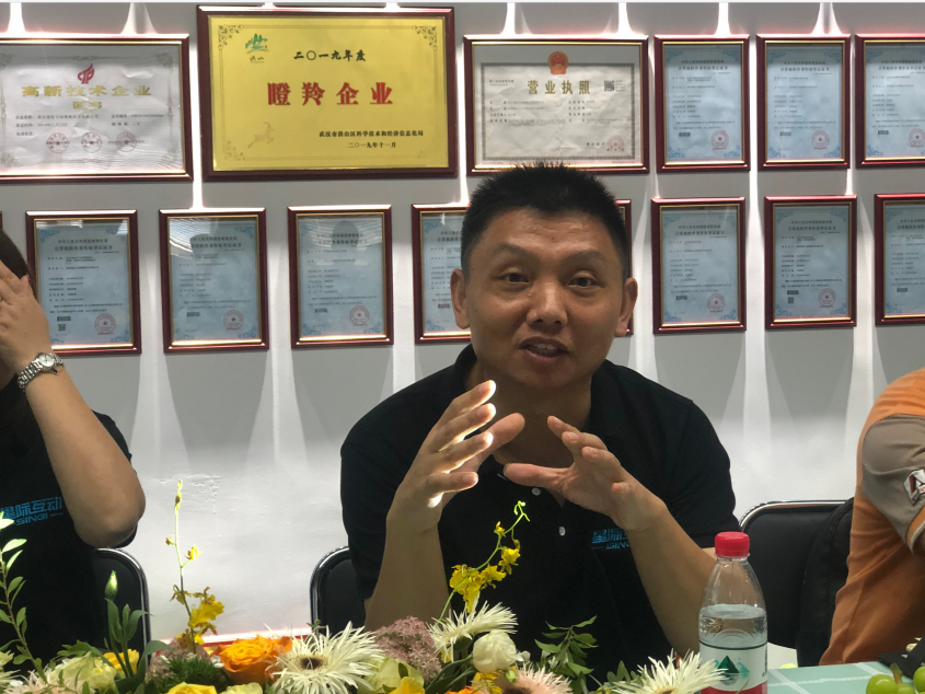 上午,走訪新會員單位武漢星際互動智能技術(shù)有限公司,公司總經(jīng)理楊海、副總經(jīng)理沈亮、產(chǎn)品經(jīng)理周界對協(xié)會走訪隊伍表示熱烈的歡迎。