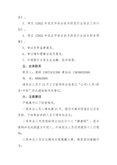3、審議《2022年武漢市安全技術(shù)防范行業(yè)協(xié)會(huì)工作計(jì)劃》。