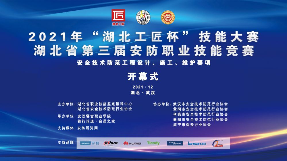 12月5日上午,2021年“湖北工匠杯”技能大賽——湖北省第三屆安防職業(yè)技能競賽開幕儀式在武漢警官職業(yè)學(xué)院隆重舉行。本屆技能競賽由湖北省職業(yè)技能鑒定指導(dǎo)中心、湖北省安全技術(shù)防范行業(yè)協(xié)會(huì)(以下簡稱:湖北省安防協(xié)會(huì))共同主辦,武漢警官職業(yè)學(xué)院、鋒行論道·會(huì)員之家承辦,武漢、孝感、黃岡、襄陽市安防協(xié)會(huì)、咸寧市保安行業(yè)協(xié)會(huì)協(xié)辦。來自全省各地選拔推薦的32家優(yōu)秀安防企業(yè)42支參賽隊(duì)伍共計(jì)84名選手將分別同臺(tái)獻(xiàn)技,展現(xiàn)各自風(fēng)采。協(xié)會(huì)秘書長陳虎出席開幕式典禮。