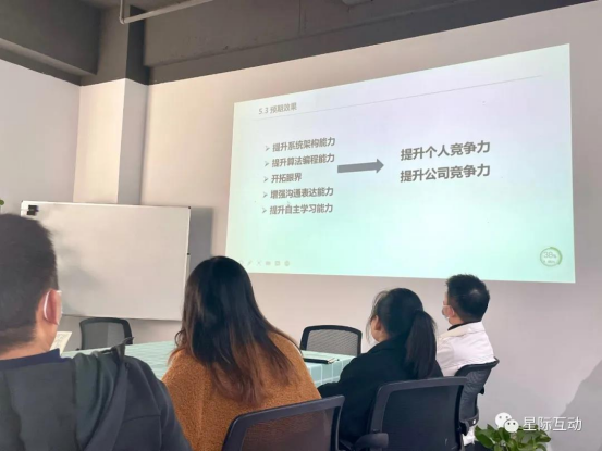 根據公司發展戰略,為推進數字化轉型思路,解決“數智轉型思路”+“解決數據孤島”多場景項目應用難題,提升客戶體驗度及滿意度,11月24日下午,在星際互動公司會議室召開了大數據技術交流會,湖北工業大學計算機學院——陳宏偉教授為此次交流會的主講嘉賓,全體員工積極參與,深入學習了解人工智能、大數據、云計算等技術,增加知識儲備,提升系統架構能力、算法編程能力,更好的運用于工作當中。