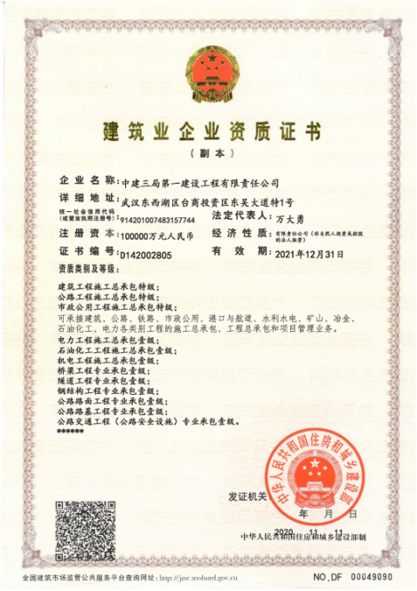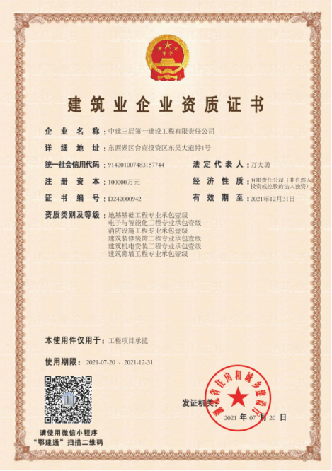 建筑業企業資質證書