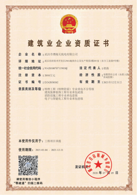 建筑智能化系統(tǒng)集成、計(jì)算機(jī)信息應(yīng)用系統(tǒng)工程、消防設(shè)施系統(tǒng)工程、電子工程的開發(fā)、設(shè)計(jì)、設(shè)備批發(fā)兼零售、安裝及服務(wù);特種工程(特種防雷)專業(yè)承包不分等級;安全技術(shù)防范工程(系統(tǒng))設(shè)計(jì)、施工(安裝)、維護(hù)。